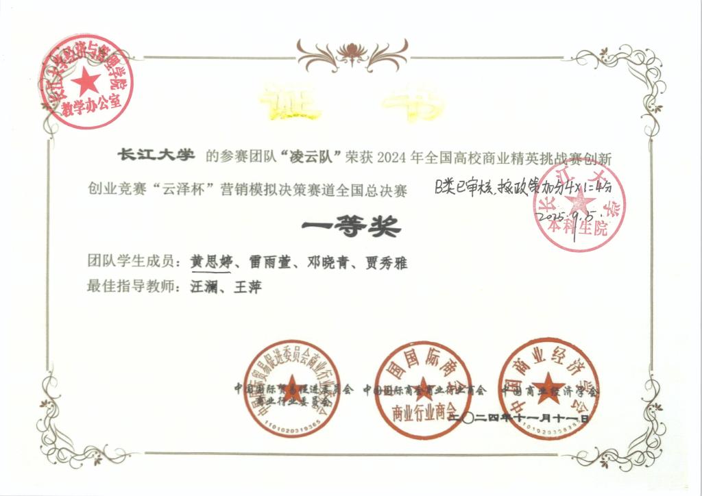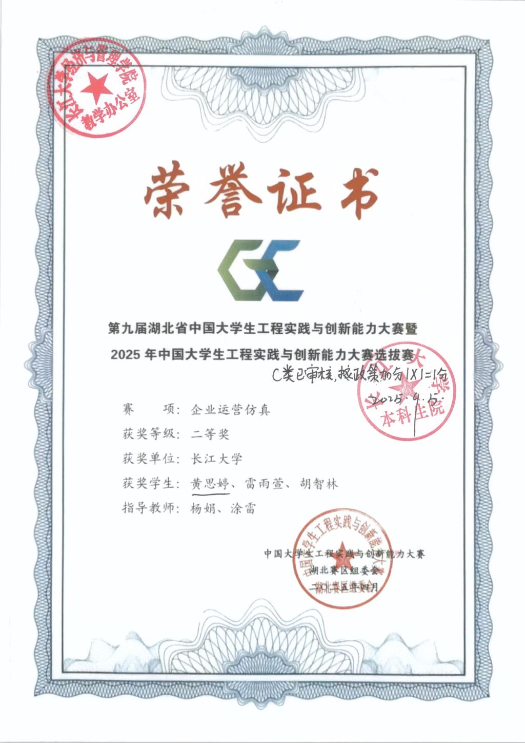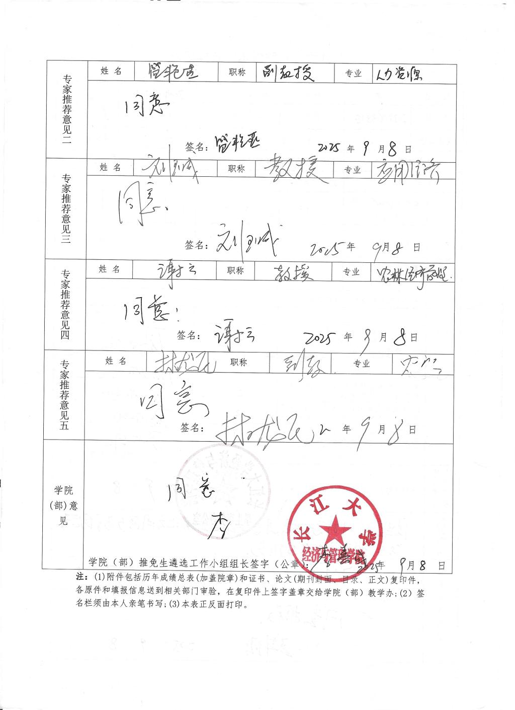 黄思婷,女,学号202200****,det365官方网站登录市场营销专业本科生。获得2025年全国企业竞争模拟大赛三等奖 、2024年全国高校商业精英挑战赛一等奖、第九届湖北省中国大学生工程实践与创新能力大赛二等奖、2025年ican大学生创新创业大赛全国三等奖、2025年全国高校商业精英挑战赛三等奖。根据《det365官方网站登录推荐优秀应届本科毕业生免试攻读硕士学位研究生管理办法》(长大校发 〔2025〕9号)和《关于做好推荐2026届优秀本科毕业生免试攻读硕士学位研究生工作的通知》等文件精神和通知要求,9月8日19:30-20:00在文科大楼416开展特殊学术专长答辩会,经答辩决定同意黄思婷进行2026届研究生推免申请(不是正式推免)。 现通过det365官方网站登录网站主页予以公示,公示日期为2025年9月10日至2025年9月12日,如有异议,请于2025年9月12日前与学院教学办联系,电话:0716-8060985。现将材料公示如下: